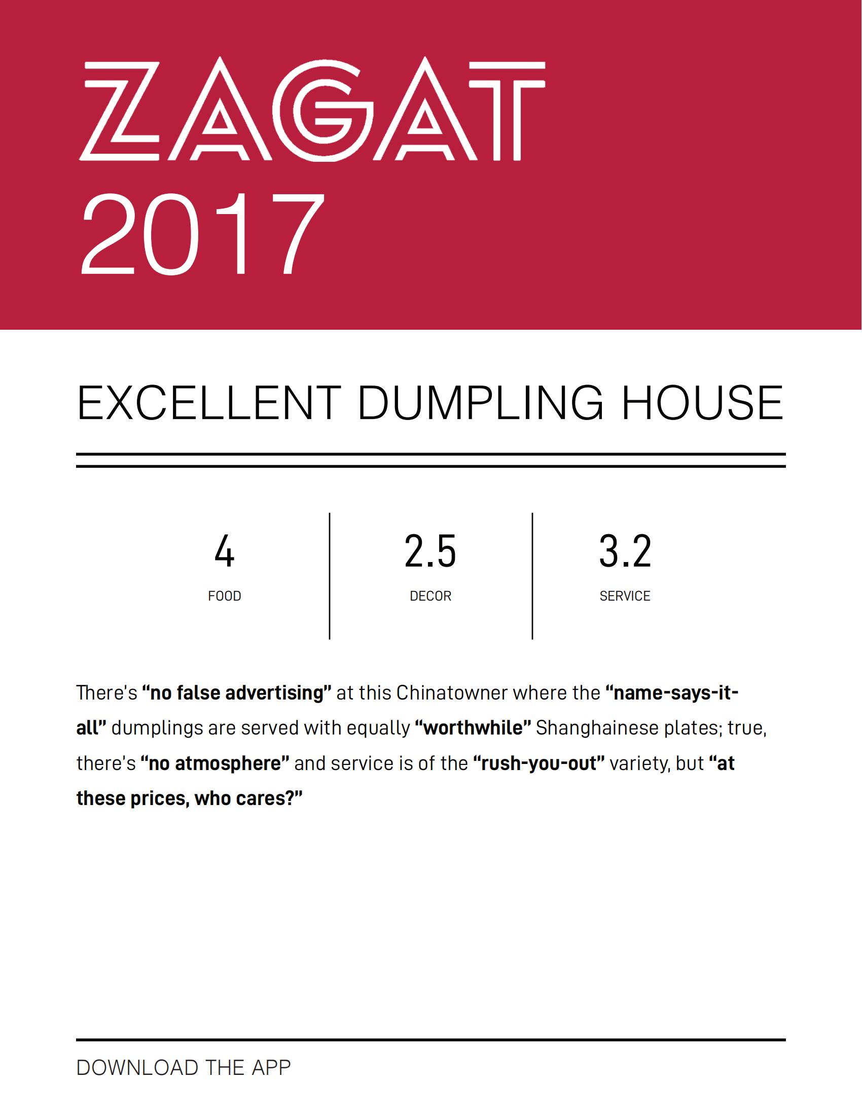 Excellent Dumpling House has been featured in numerous press media including Michelin, A Bite of America, Zagat, and New York Times.